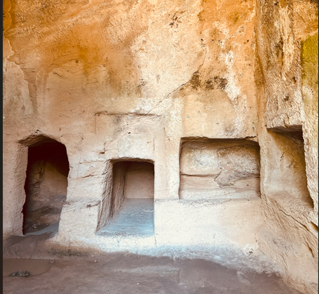 Después visitamos las Tumbas de los Reyes, un lugar impresionante con grandes estructuras subterráneas talladas en la roca. Es un parque enorme, Patrimonio de la Humanidad, con 8 monumentos principales. Mucho más completo de lo que imaginábamos, y la app lo hace súper entretenido.