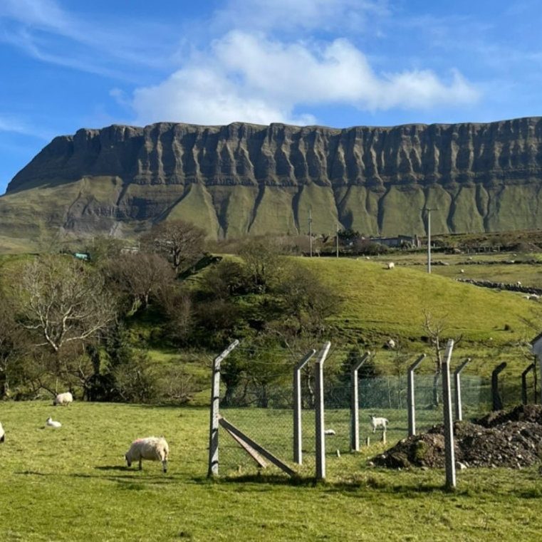 Cogimos el coche de nuevo y pusimos rumbo a Benbulbin, una de las montañas más icónicas del noroeste de Irlanda. Las vistas eran espectaculares y el paisaje nos dejó con la boca abierta.